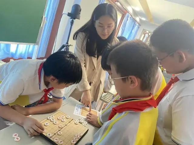 最热烈的当属棋艺展示环节:上百名学生进行角逐,场面异常热烈,全场齐声高喊“加油”,为彼此鼓劲。活动现场不仅展现了孩子们的棋艺水平、象棋知识,更体现出了团结协作。在彼此的分工合作下,不断克服挑战,增长知识的同时,也增强了信心,增进了友谊。