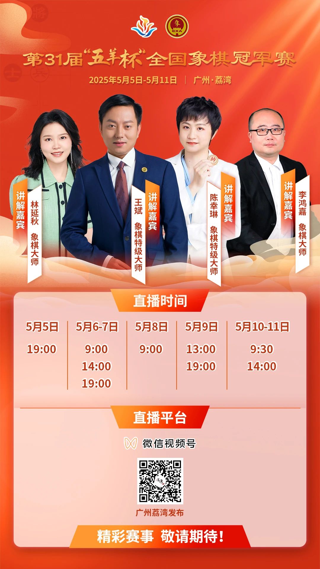 相比往届“五羊杯”,本届比赛革新赛制,一改往届的“邀请制”,采用冠军组与大师组双轨制。冠军组参赛者必须是曾获得过全国象棋冠军的大师,大师组资格赛则全面放开报名门槛,在保持传统的高竞技规格的同时,也为新锐黑马脱颖而出提供了爆冷的舞台。