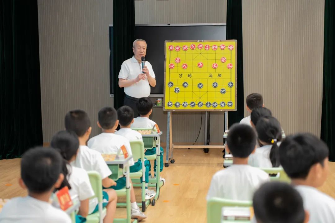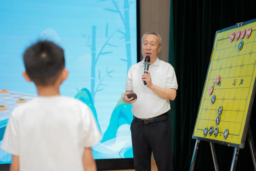 随后,主持人隆重介绍了今天的重量级嘉宾——象棋特级国际大师陶汉明。全国象棋冠军陶汉明老师以自己的成长历程为线索,向同学们深情讲述了从一名“小棋手”逐步成长为“大冠军”的非凡蜕变之路。他着重强调了兴趣在学棋过程中的关键作用,认为正是浓厚的兴趣引领他不断探索、精进棋艺。同时,陶老师也语重心长地鼓励小朋友们,在追求棋艺提升的同时,切勿忽视学业,要努力做到棋艺与学业齐头并进,相得益彰。分享结束后,小棋手们纷纷踊跃提问,字里行间流露出对象棋的无限热爱与对冠军的深深敬仰,现场气氛既热烈又温馨,充满了智慧与激情的碰撞。