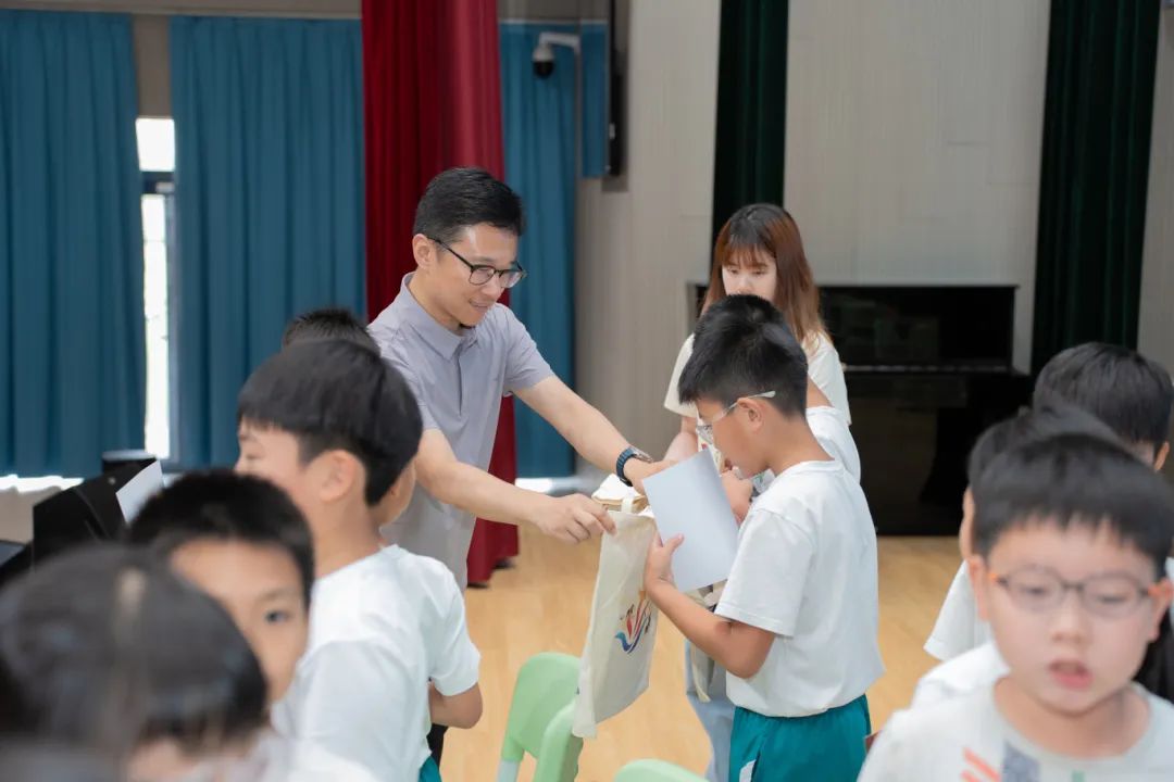 活动中,陶特大向学校赠送了亲笔签名棋盘和棋扇,象征着象棋文化的传承。同时,每位参与活动的小朋友还获得了“五羊杯”定制环保袋和象棋记录本,广东实验中学荔湾学校第三小学部的校长亲自颁发并合影留念,现场气氛温馨而热烈。