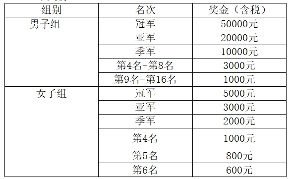 男子个人公开组录取前16名,女子个人公开组录取前6名。少儿男子公开组录取前16名,少儿女子公开组录取前8名