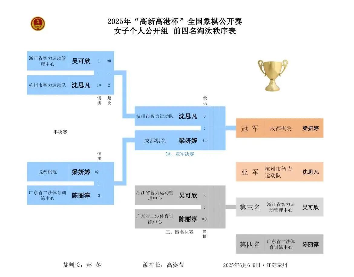 2025年“高新高港杯”全国象棋公开赛在江苏泰州落幕:孟繁睿、梁妍婷夺冠
