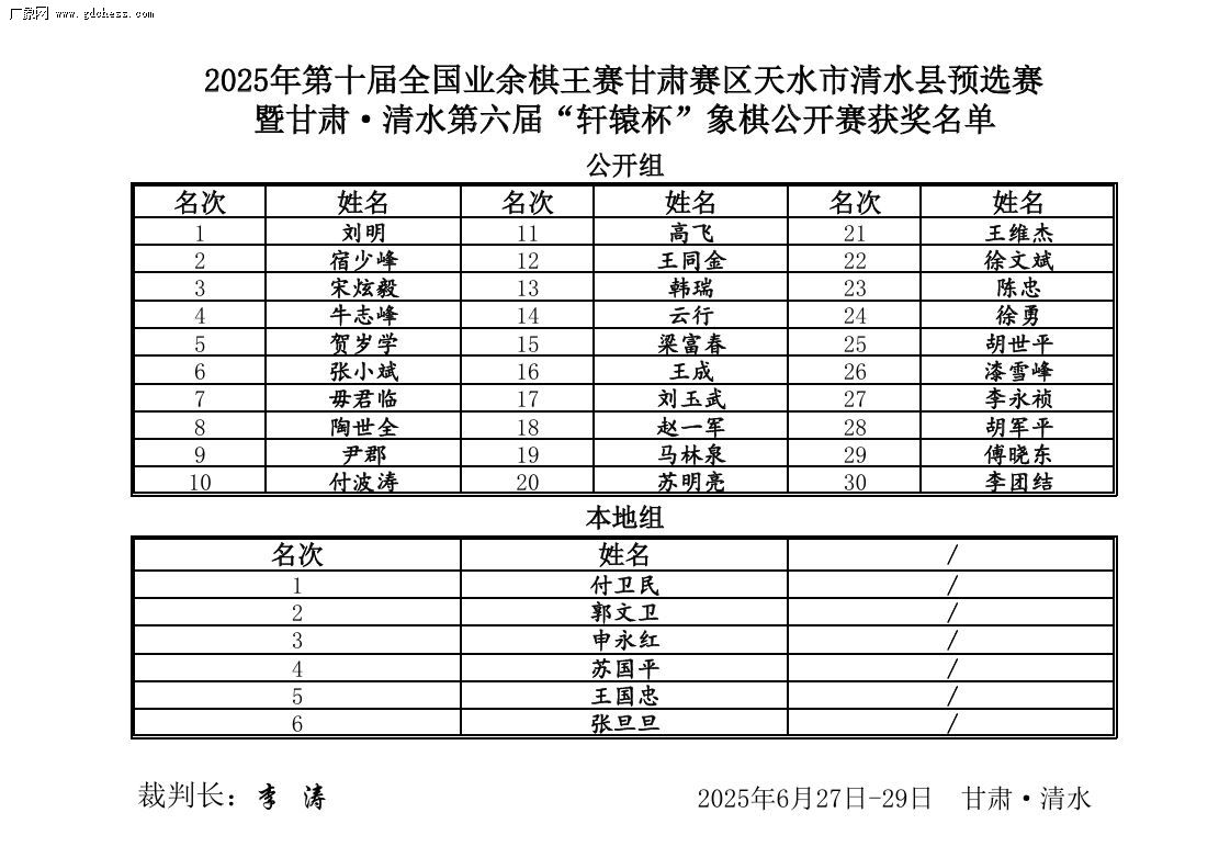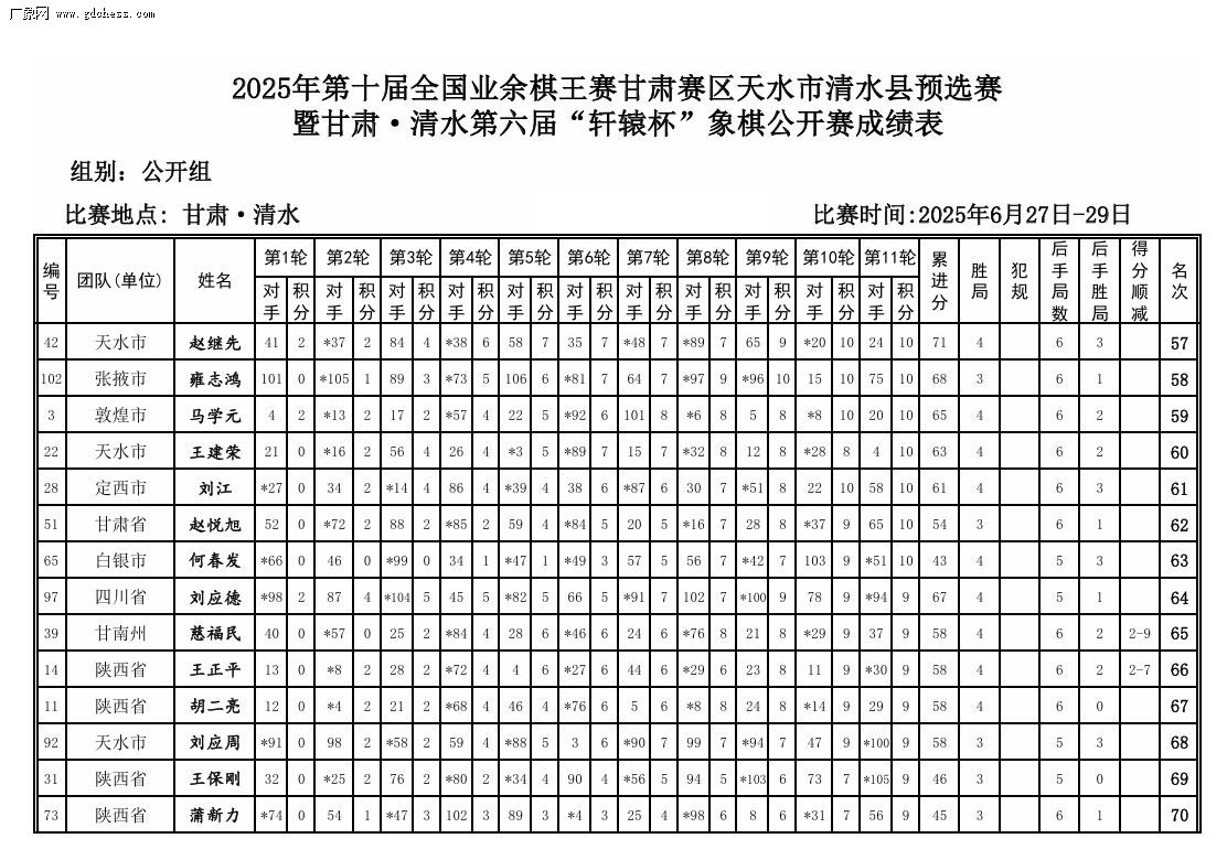 2025年甘肃·清水第六届“轩辕杯”象棋公开赛成绩册