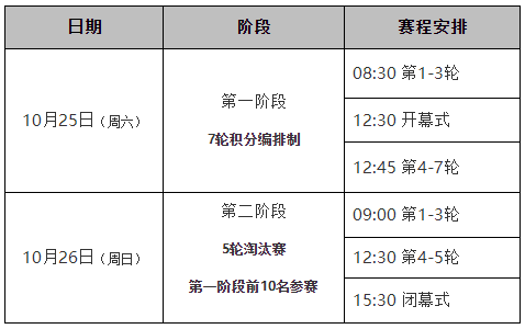 11. 十一、竞赛办法: 比赛采用7轮积分编排+5轮淘汰赛制。