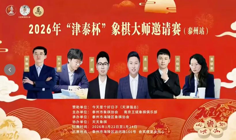 1月24日,2026年“津泰杯”象棋大师邀请赛在泰州市会宾楼宴会中心圆满落幕。