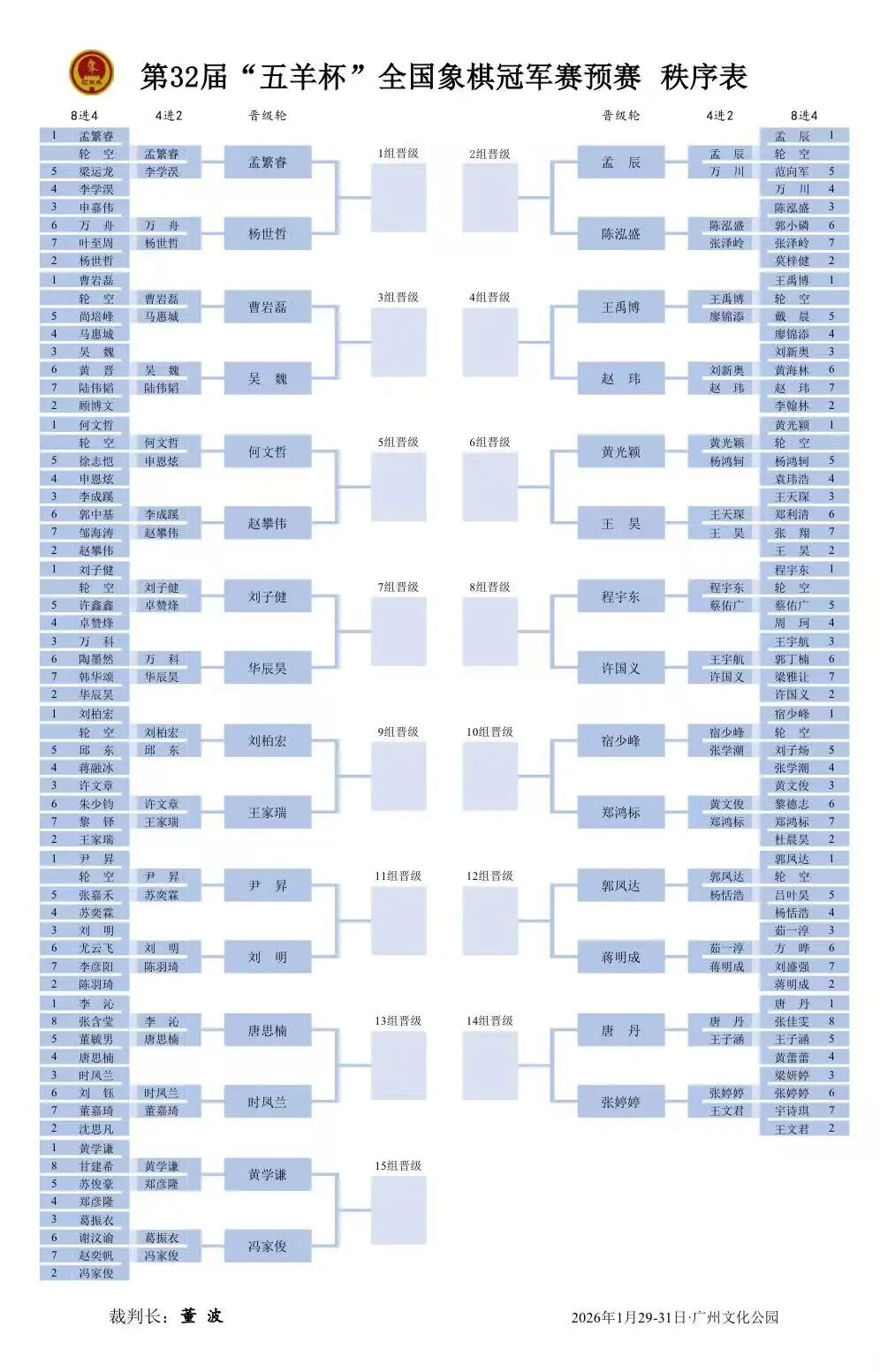 1月30日,第32届“五羊杯”全国象棋冠军赛预赛进入第二比赛日,12位男子组种子选手正式登场,曹岩磊、王禹博、孟繁睿等热门棋手均遭遇对手强力阻击,竞争进入白热化。