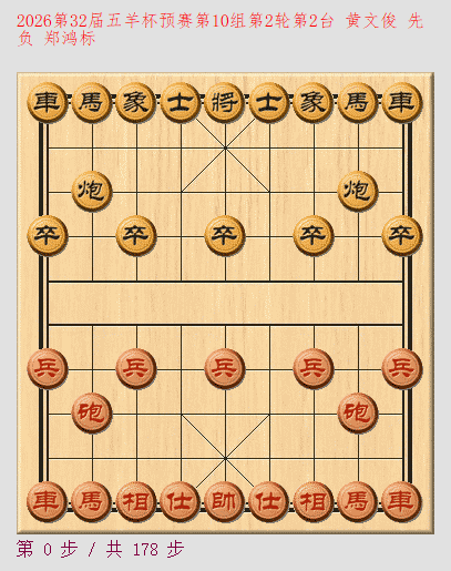 相关链接:2026第32届“五羊杯”全国象棋冠军赛预赛第1组:信息 规程 排名 英文 对阵 对阵图 统计 棋谱