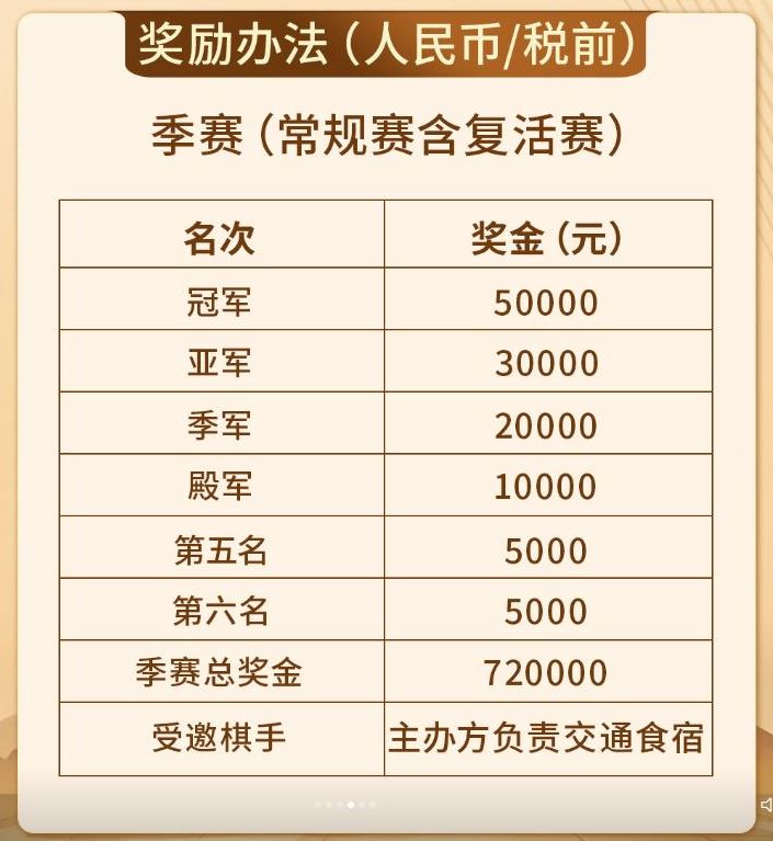 (九) 季赛前四名棋手获得下一季参赛资格,第五、六名棋手无法参赛下一季比赛但可以参加复活赛继续争取季赛资格。