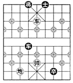 4、捉的条件中说:“捉产生于刚走的这着棋,上一着尚不存在。”这一本质条件加得很好!但其中下半句的表达不够严谨。例如,“待判局面”中的长捉方,不仅上一着“尚已存在”,而且上五着中着着都存在着捉,要不然怎能叫长捉呢!当然所存在的捉的情况可能有所变化。着法:帅五退一(捉) 车4进3(将) 帅五进一(捉) 车4退3(闲)。