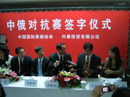 新浪体育讯 中国国际象棋协会与兴泰投资有限公司关于举办第三届中俄国际象棋对抗赛的签约仪式5月17日上午在中国棋院举行。