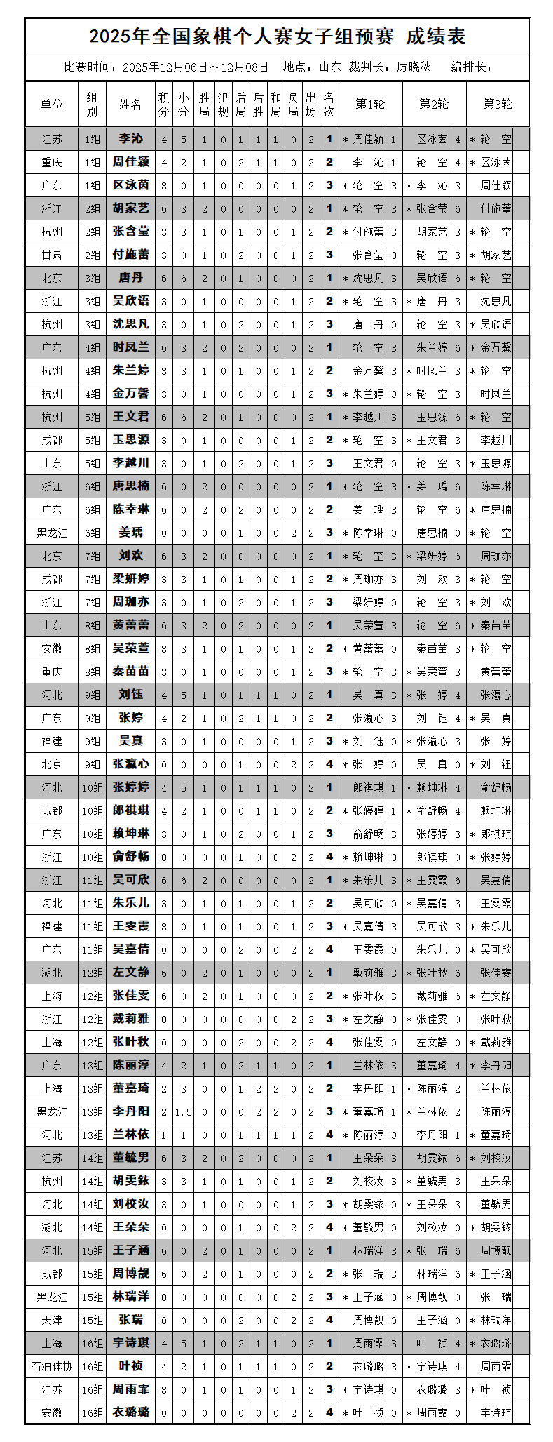 【出线形势AI分析】2025年全国象棋个人赛所有组别单循环对阵明细表