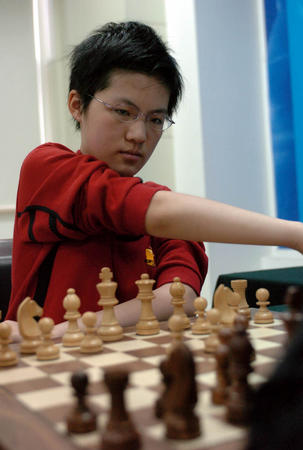 新华社照片,济南,2005年4月18日 [体育](4)棋牌――国际象棋世界女子明星赛赛况 4月18日,中国选手侯逸凡在比赛中。 当日,世界国际象棋女子明星赛第八轮在济南继续进行。新华社记者 范长国摄
