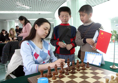 新华社照片,济南,2005年4月16日[体育](1)国际象棋――世界女子明星赛赛况 4月16日,国际特级大师、中国选手诸宸在比赛前为小球迷签名。当日,世界国际象棋女子明星赛第五轮的比赛在济南继续进行。新华社记者范长国摄