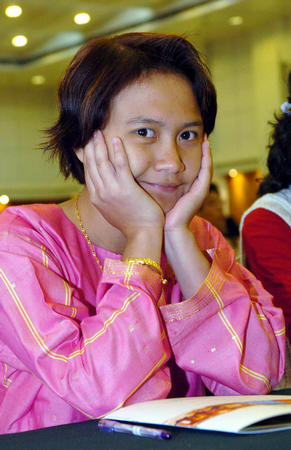 4月14日,马来西亚选手斯-提朱莱卡在开幕式上。当日,参加国际象棋世界女子明星赛的12名棋坛佳丽全部抵达济南并参加了简短的开幕式。首轮比赛将在今天下午开始。新华社记者范长国摄