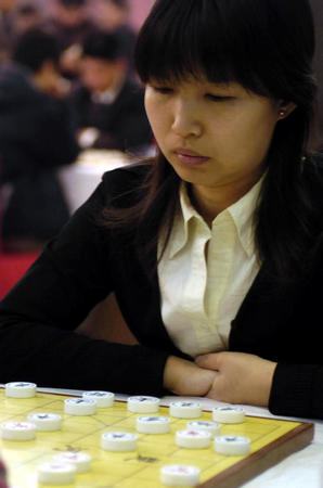 在比赛中思考,最后,她在首轮比赛中落败。当日,为期九天的2005年度全国象棋团体锦标赛在兰州开赛,共有来自全国33支代表队的104名棋手参加角逐。新华社记者梁强摄