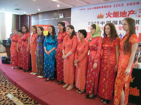 开幕式的另一大亮点是12金钗的旗袍“秀”,主办者为参加世界女子明星赛的12位棋坛佳丽每人定做了一套红色旗袍。联赛开幕式上12金钗身着充溢着东方神韵的旗袍集体亮相,立即引来在场所有记者摄像机和照相机的狂轰烂炸。