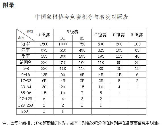 附件:《中国象棋协会竞赛积分排名办法(试行)》