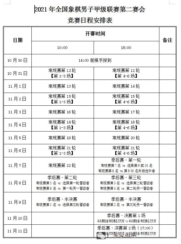 2021年全国象棋甲级联赛将迎来赛制上的重大改革。每一台双方选手将进行最少一盘最多三盘的激烈较量,直至分出胜负为止:第一盘局时20分,每步加5秒;若弈和则换先进行超快棋,局时5分,每步加3秒。再度弈和则抽签先后手进行附加赛,红方局时6分,黑方局时4分,双方每步加3秒,和棋黑胜。